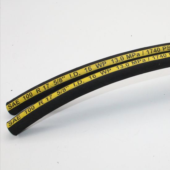 Hydraulic Rubber Hose SAE 100 R17, High-pressure hydraulic oil lines. Exceeds SAE 100 R17 requirements and Performance requirements of EN 857 1SC. The hose has smaller exterior dimensions and significantly tighter bend radius than other SAE 100 R1 and SAE 100 R2 hose.