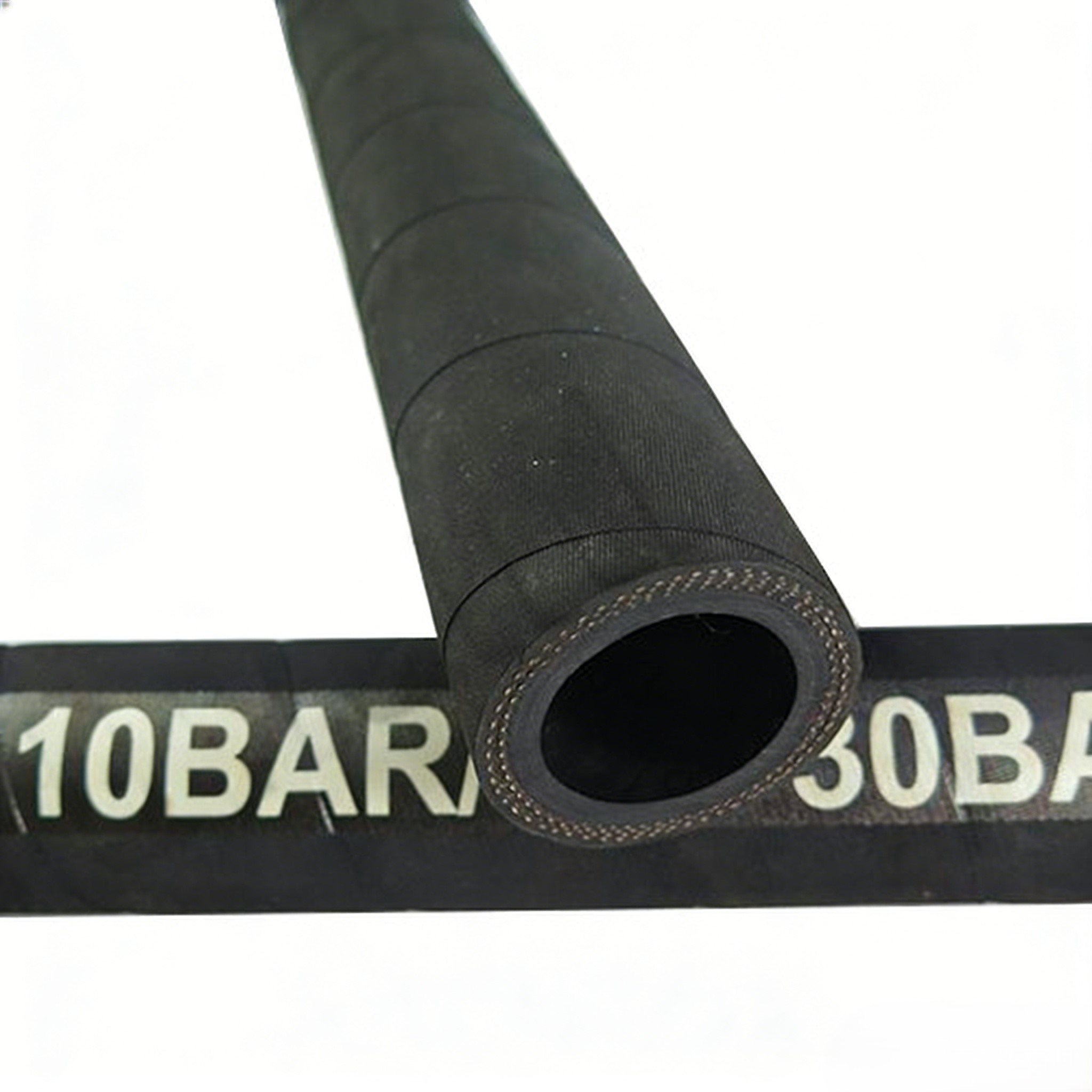 SAE 100 R4 textile reinforced hydraulic hose is mainly used for oil suction and delivery in the hydraulic systems. It is composed of three parts: tube, reinforcement and cover. The tube is made from high quality black, smooth and oil resistant synthetic rubber, making the hose widely used for oil delivery. The reinforcement is made from one layer or multiple layers of high strength braided textile with helix steel wire, making the hose have solid structure. The cover is made from high quality synthetic rubber, making the hose resistant to abrasion, corrosion, weather, ozone, aging and cut. The hose have longer service life as a result.